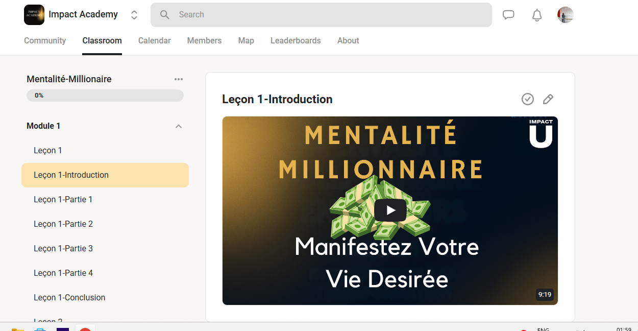 Les leçons sont réparties en 7 Modules puissants conçus de maniere à t'amener vers la manifestation de ton désir financier progressivement.